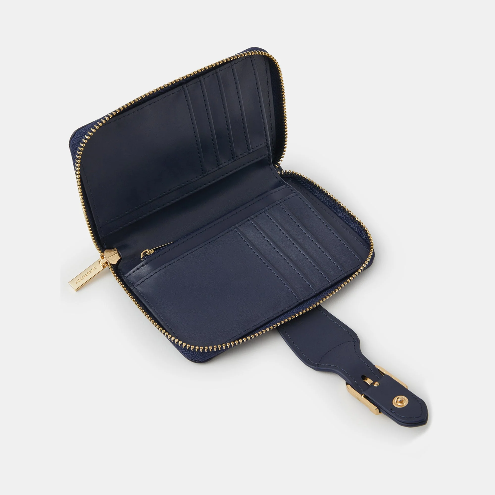Keeping your cards, coins and cash secure in style, this embroidered purse features a zip-around fastening and a buckle strap tab. Open to find eight card slots and a zip pocket.